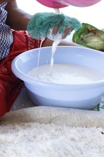 すりおろしたココナツの胚乳をネットで包んで搾るとココナツミルクが採れる.かつてはココナツの中果皮の繊維を用いて搾っていたが,近年は化学繊維のネットを用いることが多い.