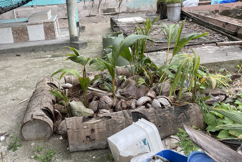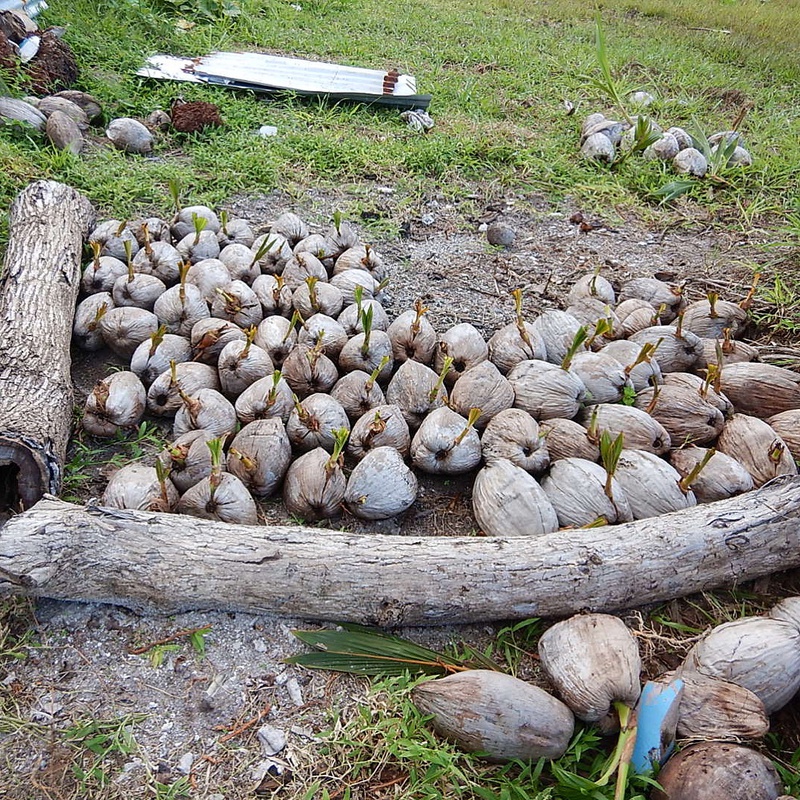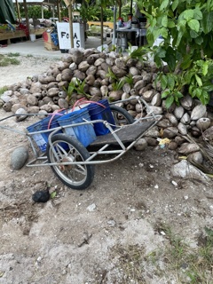一か所に積まれたココナツ