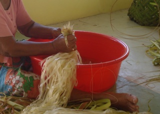 [北] ココヤシの葉状部の先端部分をちぎったもの
