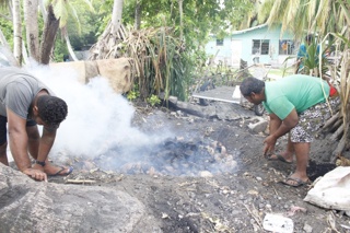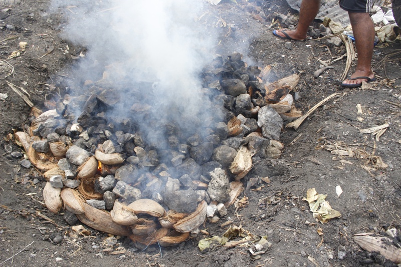 伝統的な暮らしでは地面を掘ってumuを作る.現代ではトタンで囲って作ることもある.[参]