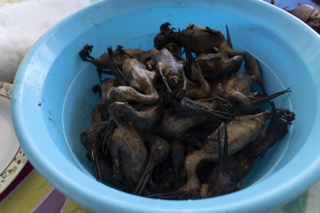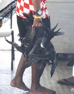 羽毛をむしり取り,丸焼きにして食す.